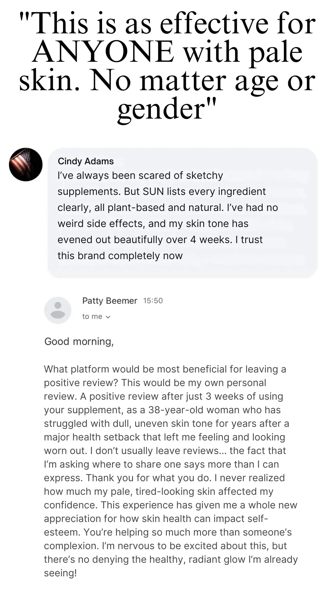 Everything we say is honest, transparent, and supported by research. We provide science-backed ingredients that are well-studied for enhancing skin tone. Below, we provide links to studies showing the potential benefits of our key ingredients, so that you can see them for yourself!